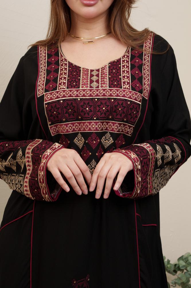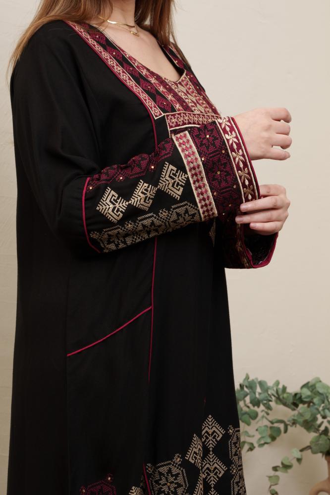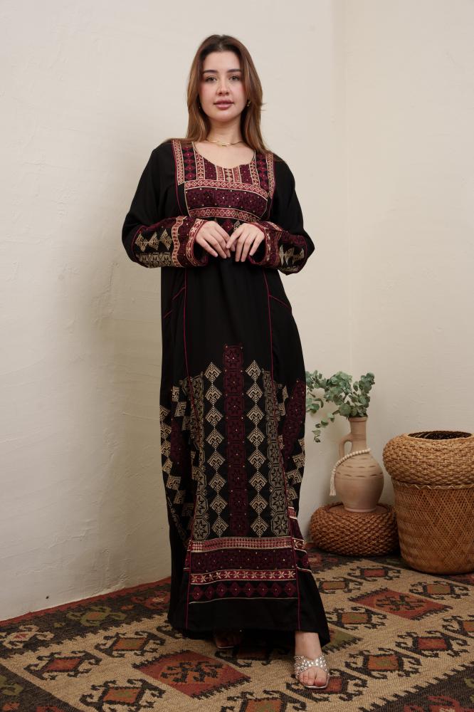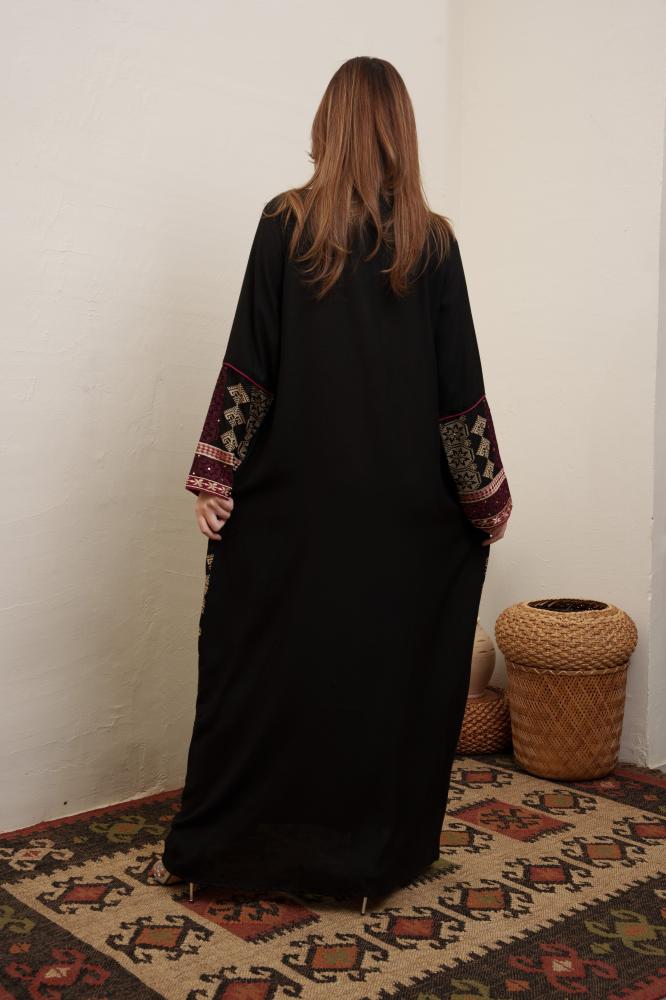 استلهمي أناقة التراث الأردني الفاخر مع هذه الجلابية باللون الاسود، حيث يجتمع التصميم التقليدي مع التفاصيل العصرية لتمنحكِ إطلالة استثنائية.