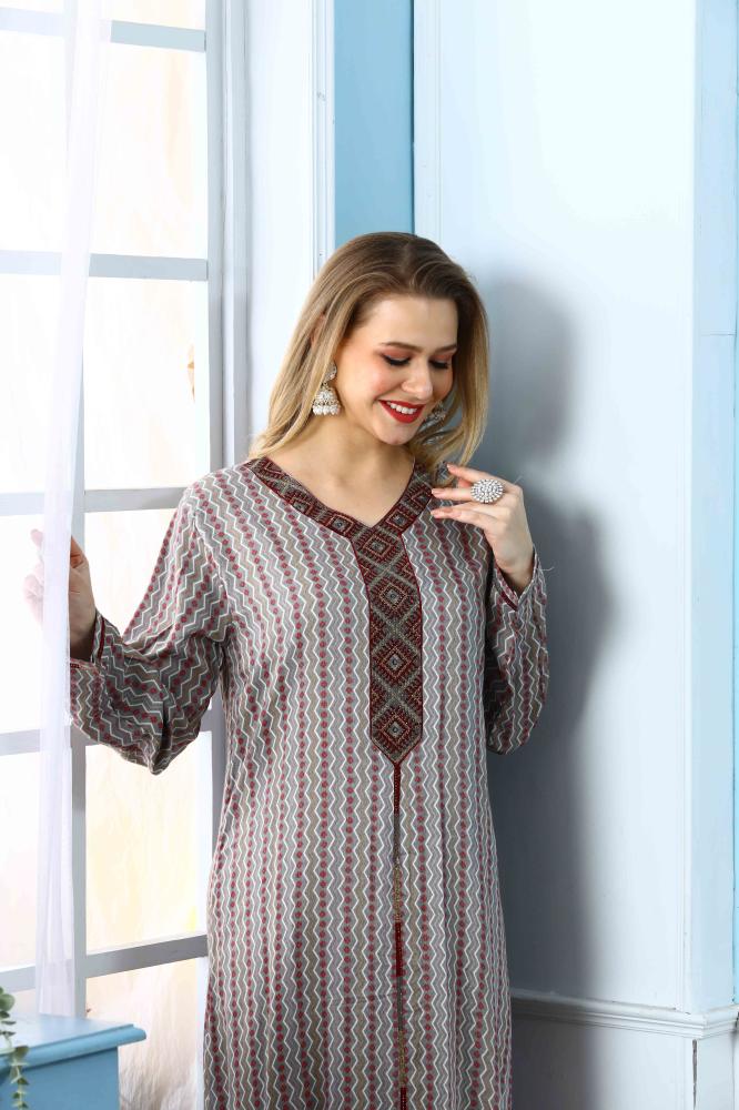 جلابية استايل بحريني لون رمادي موديل DB5-76
