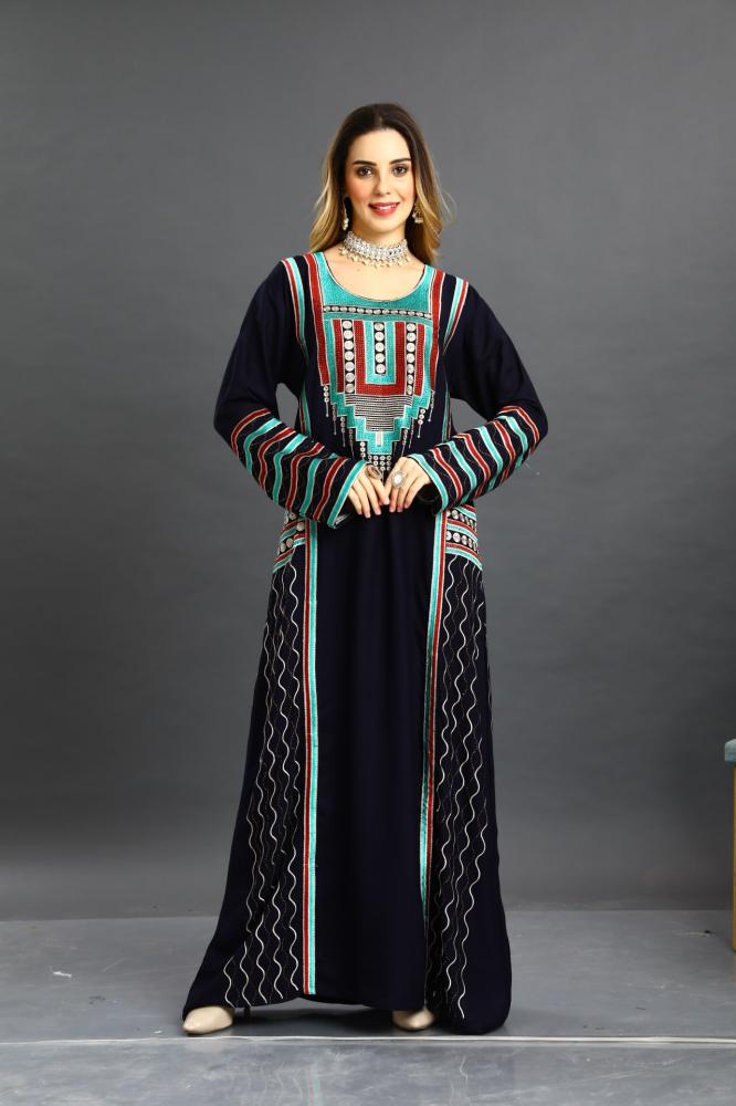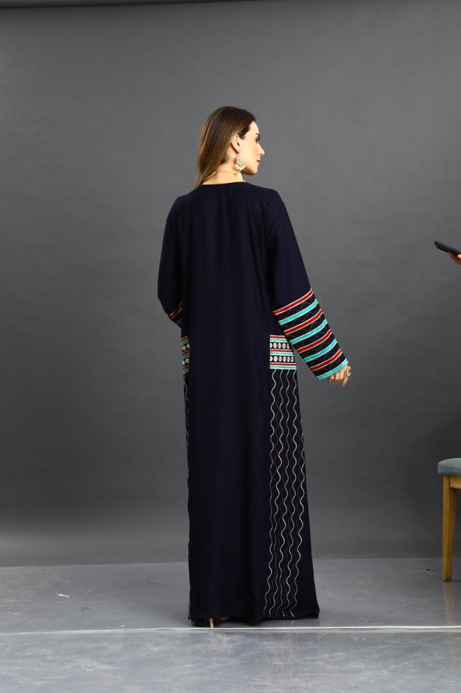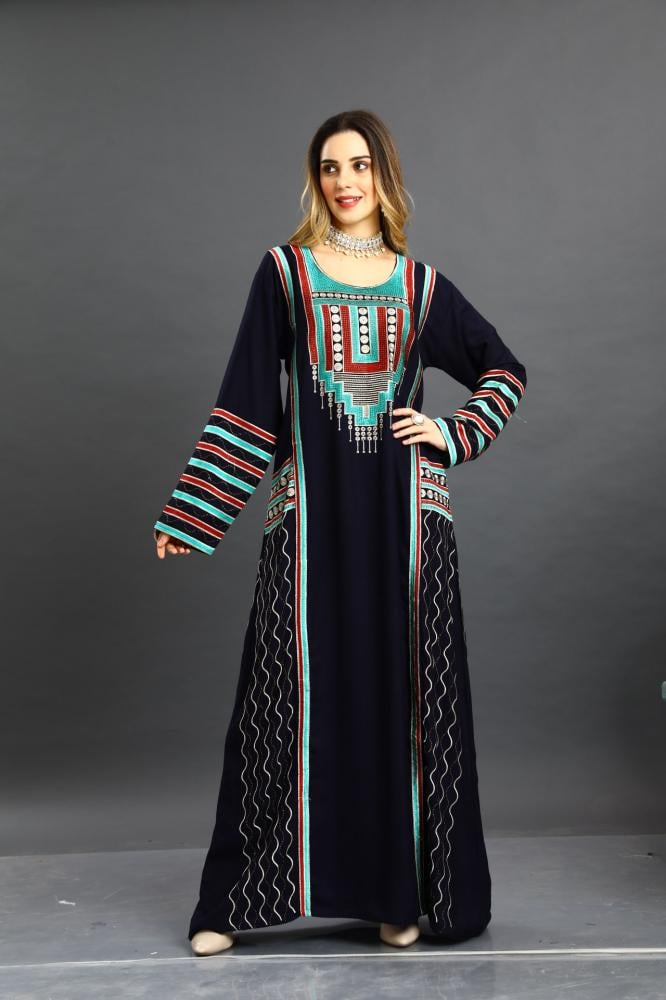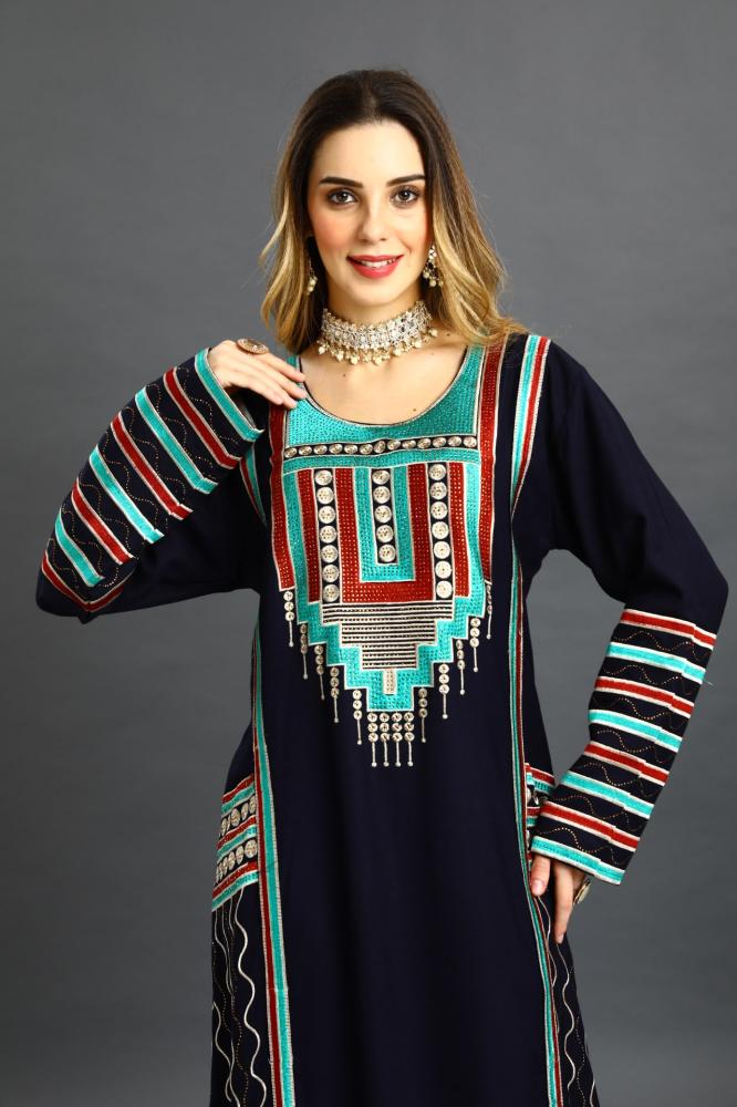 اختاري الجلابية العسيري لون كحلي التي تجمع بين التراث البدوي الأصيل واللمسات العصرية، لتضفي عليك لمسة من الفخامة والتميز في كل مناسبة.