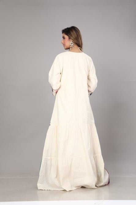 جلابية قرقيعان نسائي بتشجير أخضر وعودي MM-04