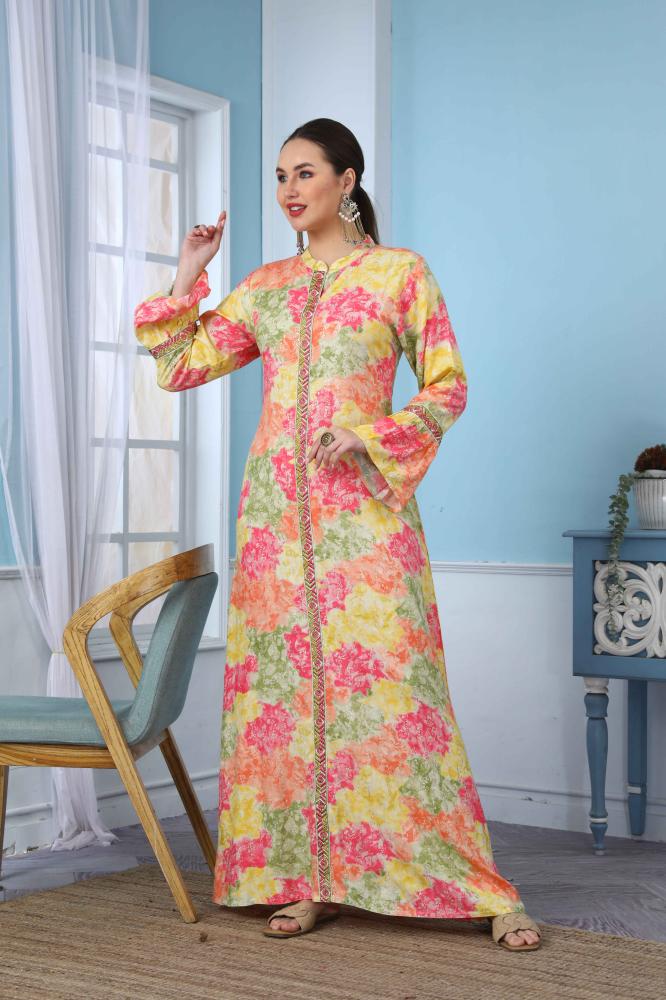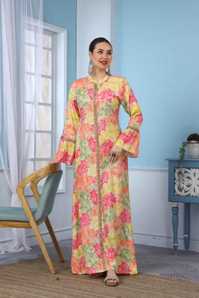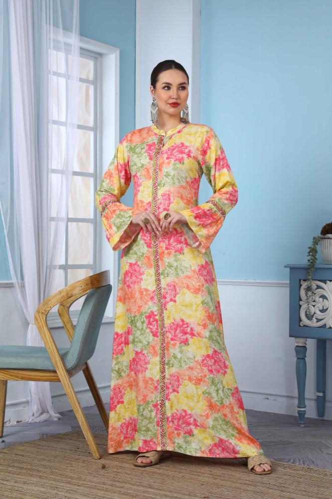 جلابية كويتية ملونة من الفيسكوز الناعم موديل DB5-63