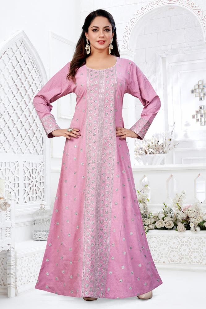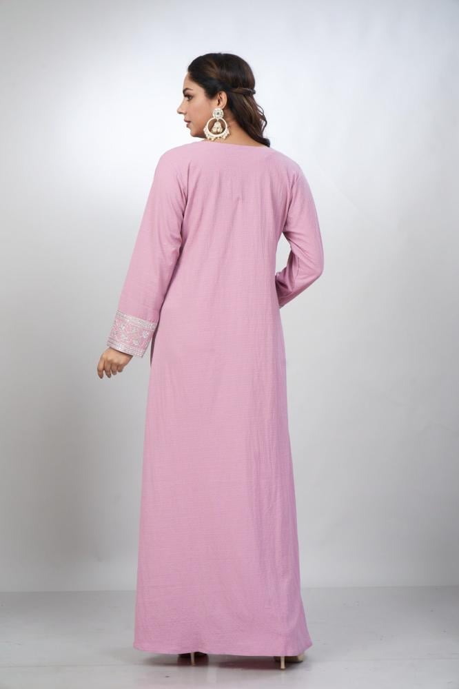 ارتقي بإطلالتك مع الجلابية الكويتي الناعمة باللون الفوشي بتطريز كمبيوتر المستوحاة من الذوق الأصيل، بتفاصيل مترفة تبرز جمالك بكل أناقة.