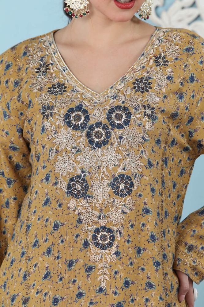 - الصدرية: مطرزة بتطريز كمبيوتر دقيق مع إضافة الفصوص البراقة لمظهر فاخر وجذاب.