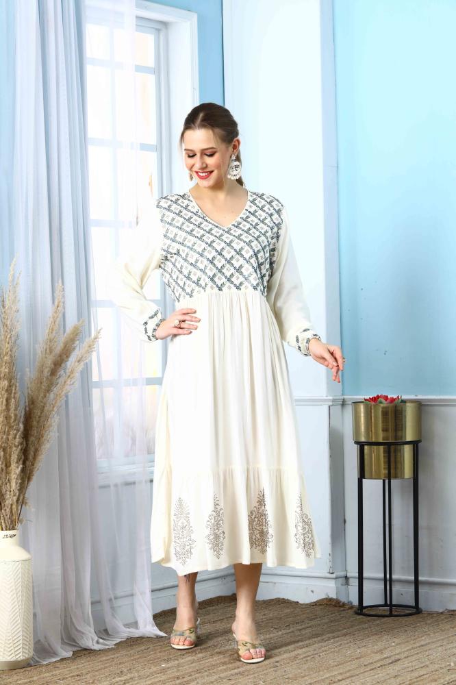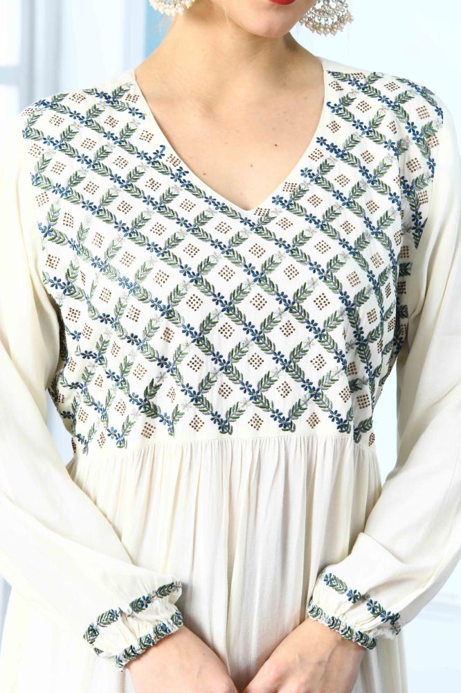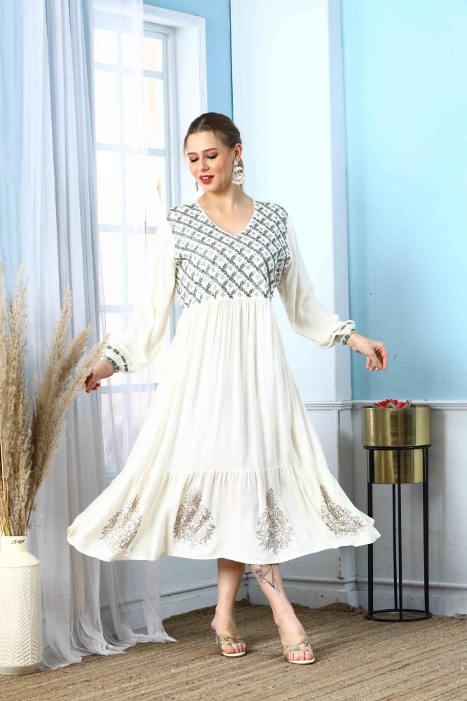 جلابية مدى استايل كويتي لون اوف وايت موديل RB5-138