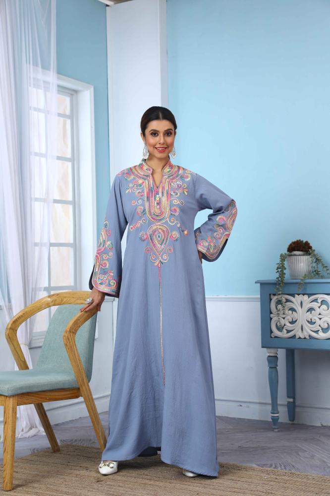استمتعي بجاذبية الطابع المغربي الأصيل مع هذه أفخم جلابية مغربية لون سماوي، التي تجمع بين الحرفية التقليدية والتفاصيل العصرية لإطلالة تعكس الذوق الرفيع.